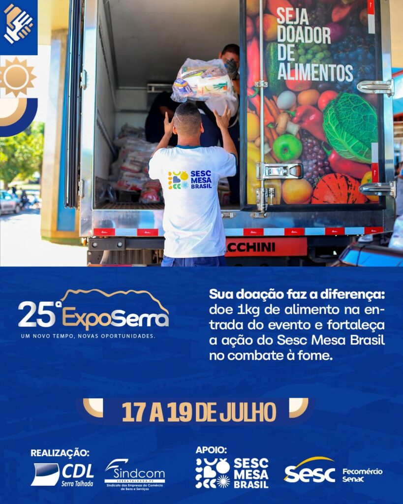 A 25ª edição da ExpoSerra, maior feira de negócios do interior de Pernambuco, também será palco da solidariedade. A organização do evento, que acontece de 17 a 19 de julho, está promovendo uma campanha de arrecadação de alimentos em parceria com o programa Sesc Mesa Brasil, iniciativa nacional voltada ao combate à fome e ao desperdício.