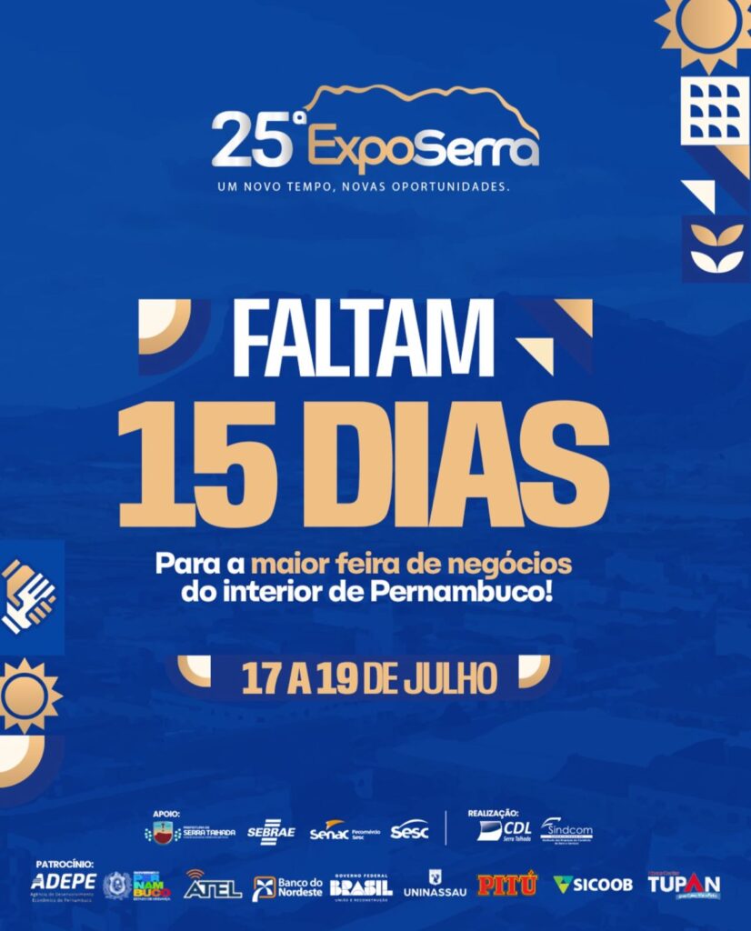 Faltando poucos dias para a realização da maior feira de negócios do interior de Pernambuco, a 25ª ExpoSerra movimentou as redes sociais e o setor produtivo com a contagem regressiva oficial.