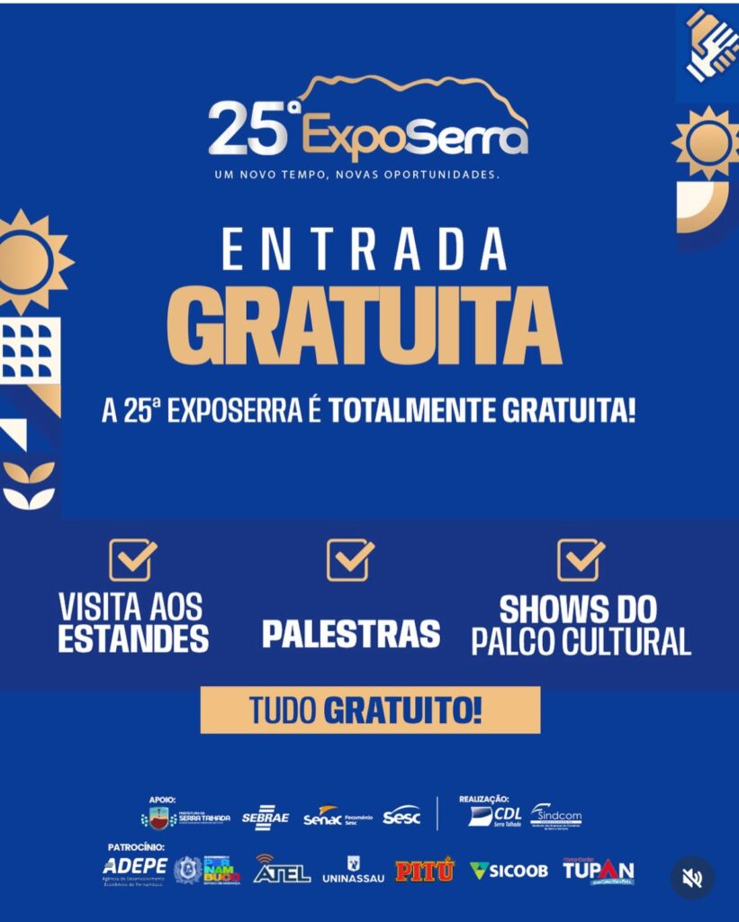 A 25ª edição da ExpoSerra – Feira da Indústria, Comércio e Serviços de Serra Talhada reforçou seu compromisso com a democratização do acesso à cultura, ao conhecimento e aos negócios ao anunciar que toda a programação do evento é 100% gratuita.